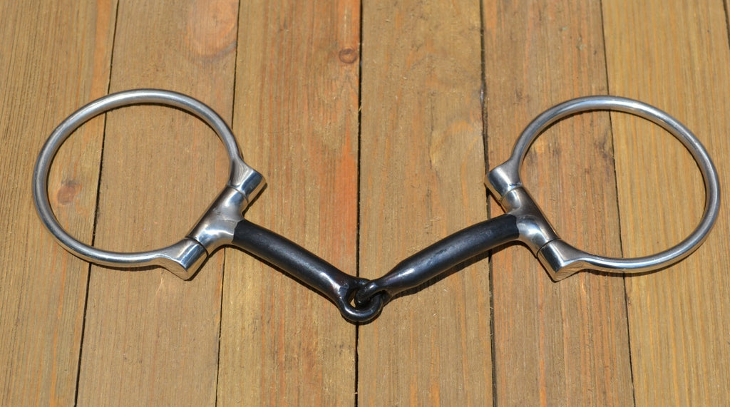 Designed to apply pressure to the lip on the opposite side of the face.  Will not pinch.  Sweet iron naturally rusts into a light patina.  The rust creates a sweet taste for the horse, making the bit more acceptable and increasing salivation for a supple mouth.