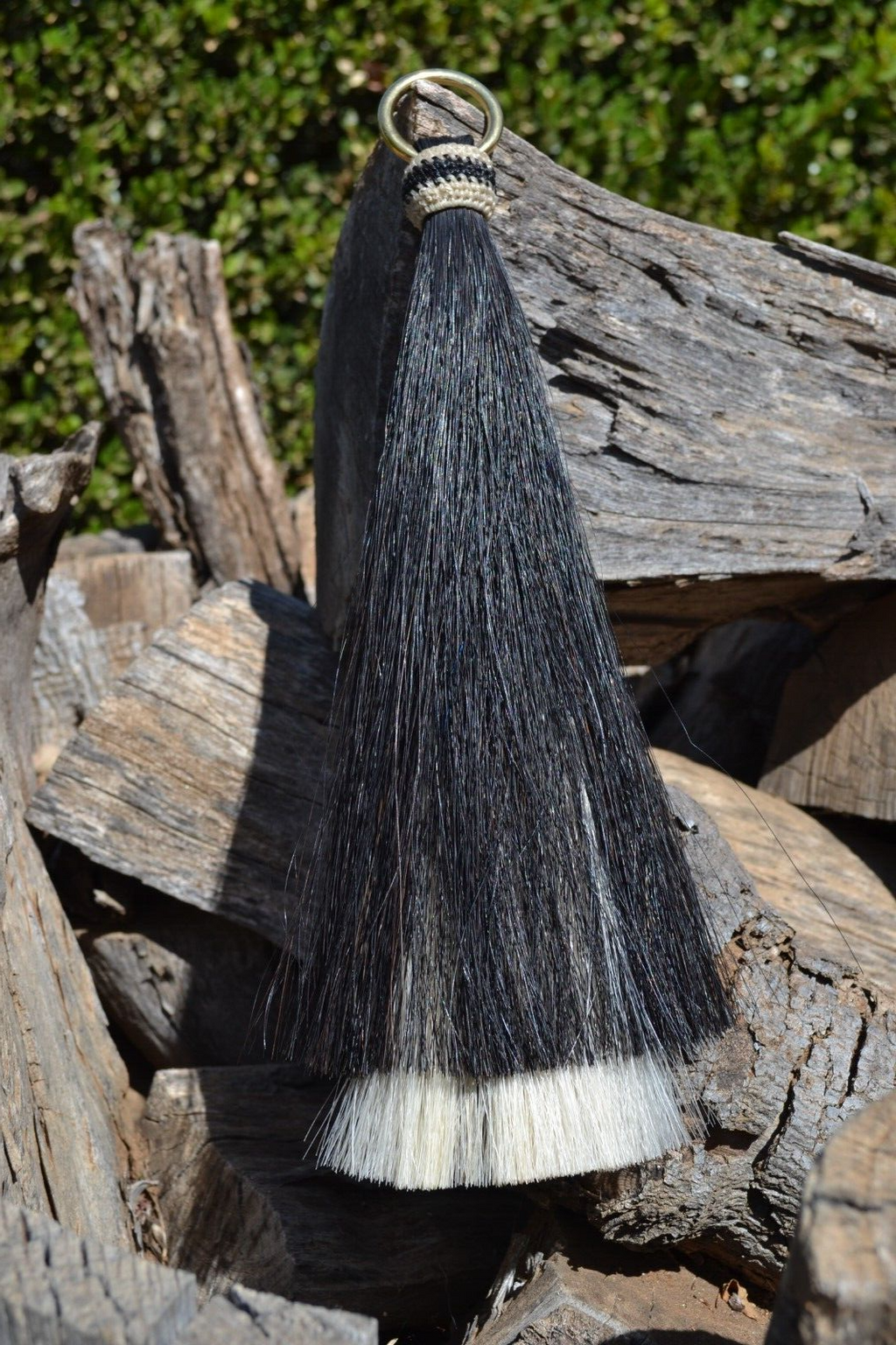 Horse Hair Shoo Shu-Fly Tassel Two Bell Mule Tail Cut -Black/White - 12" Long