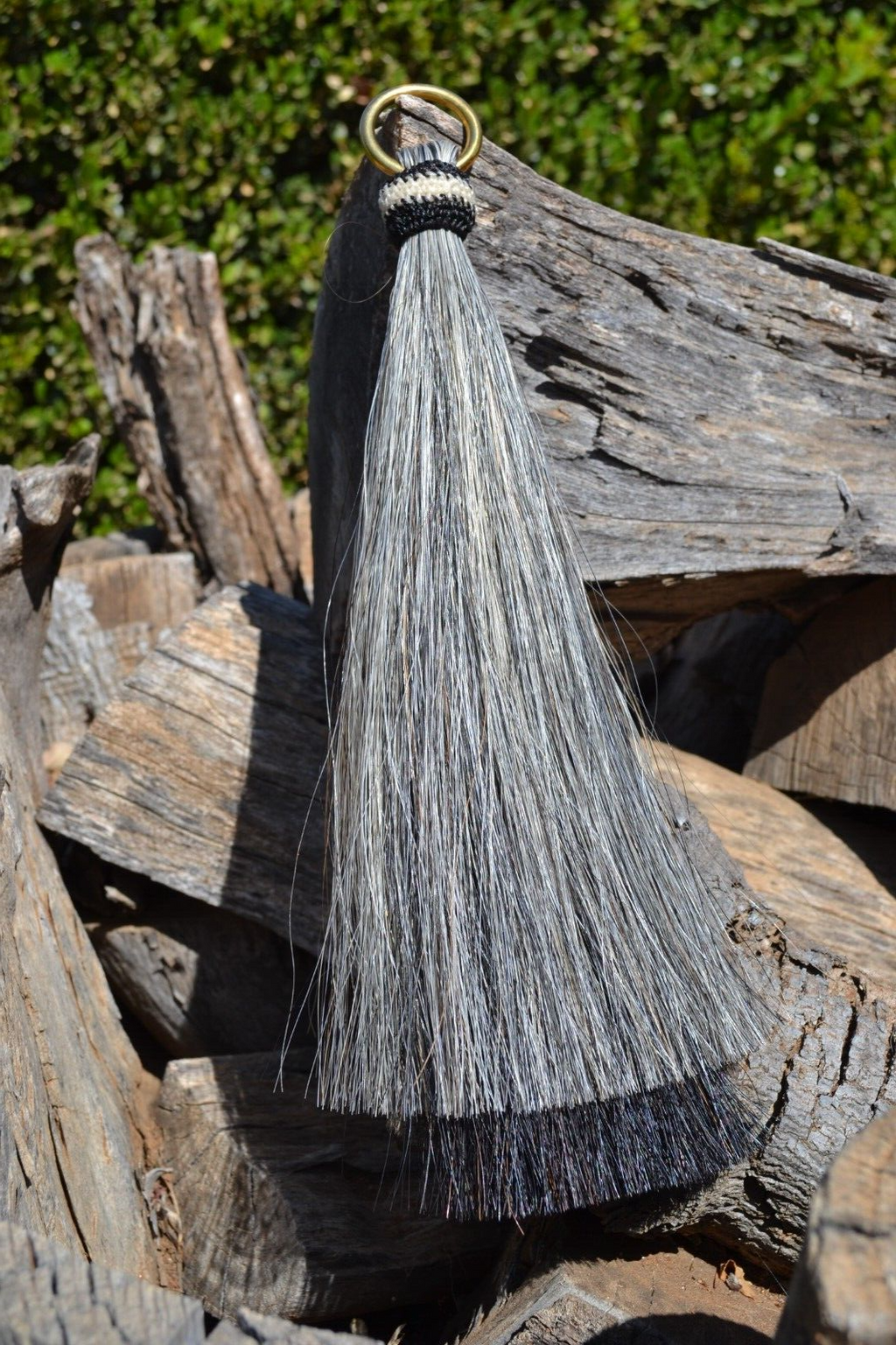 Horse Hair Shoo Shu-Fly Tassel Two Bell Mule Tail Cut -Grey/Black - 12" Long