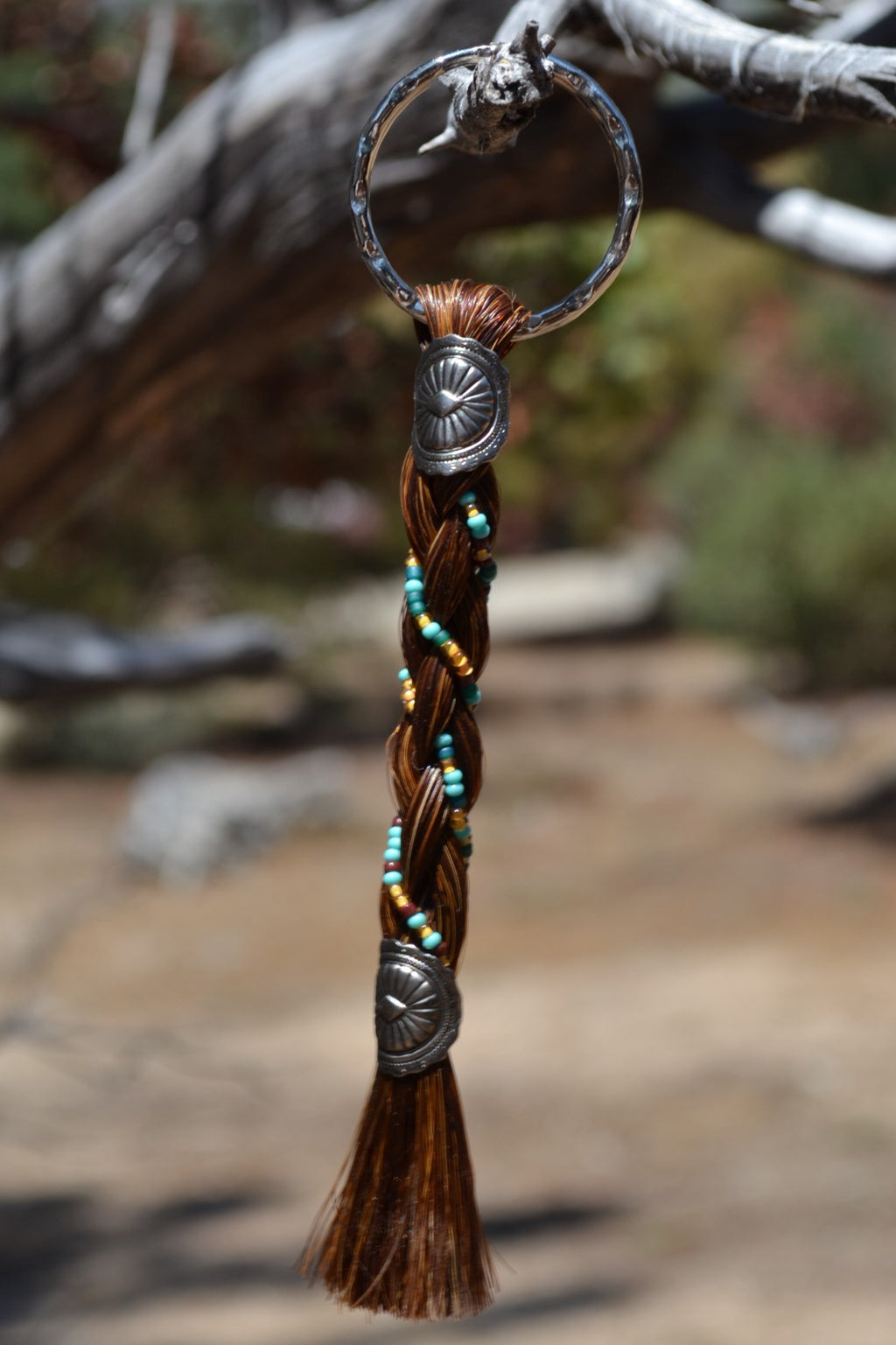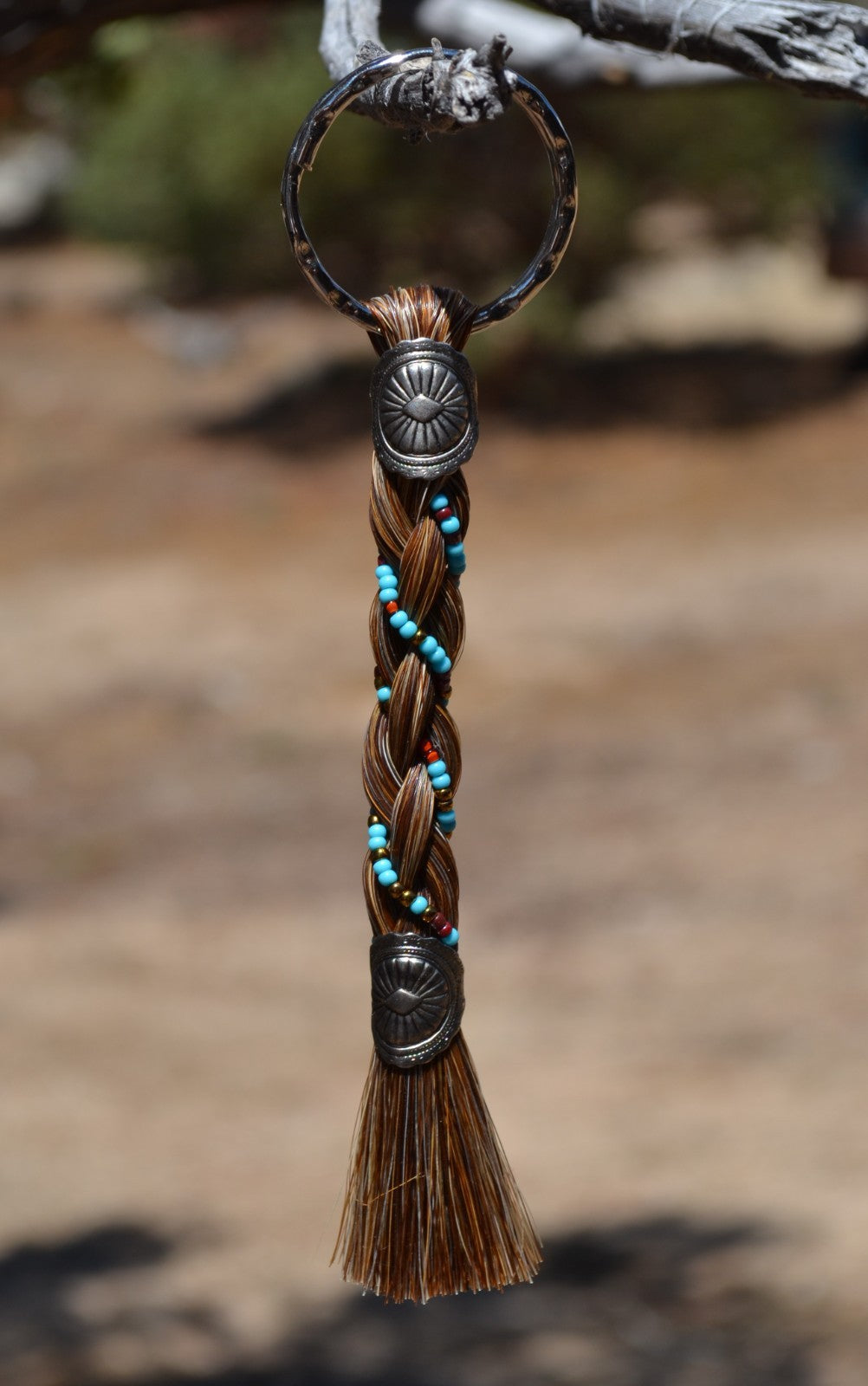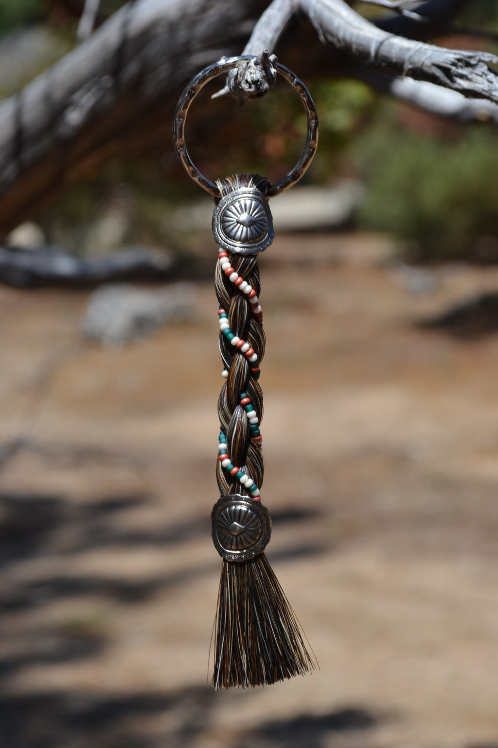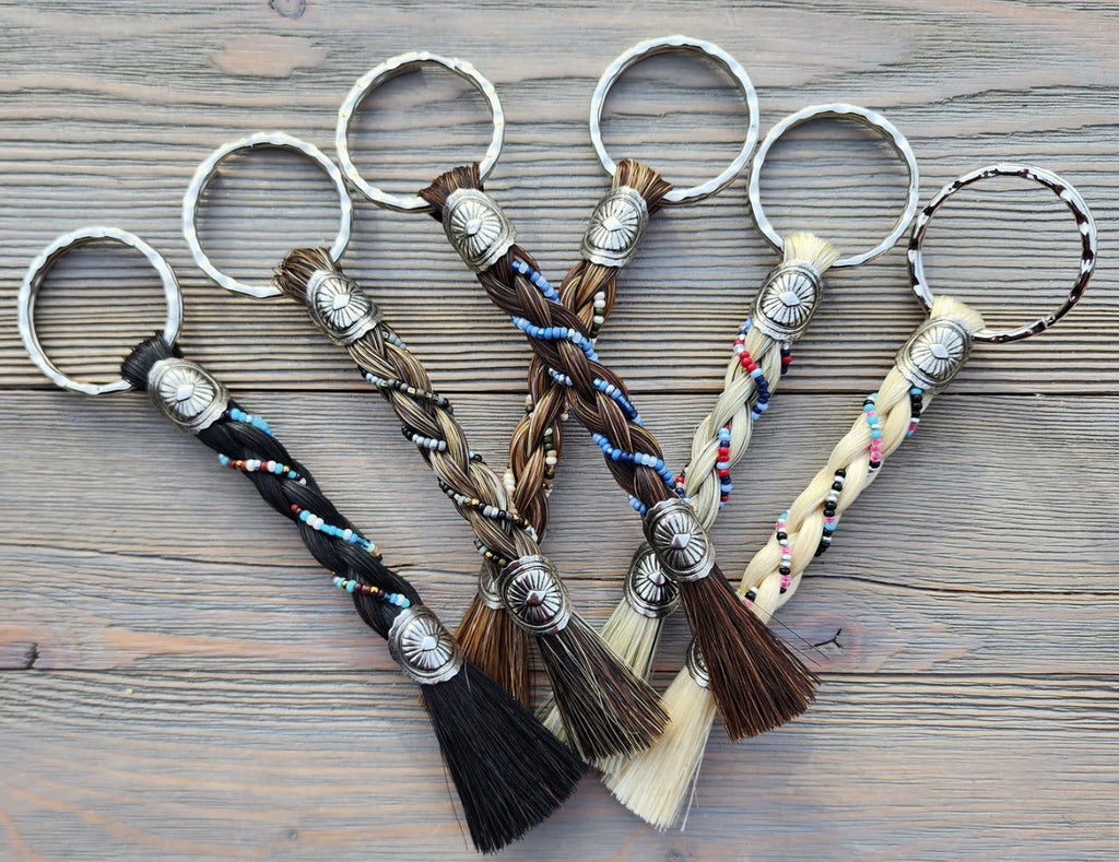 Beautiful Hand Braided Horse Hair Key Ring Chain with Colorful Beads