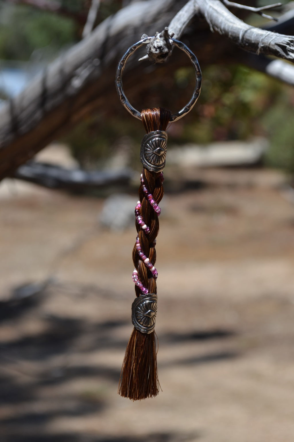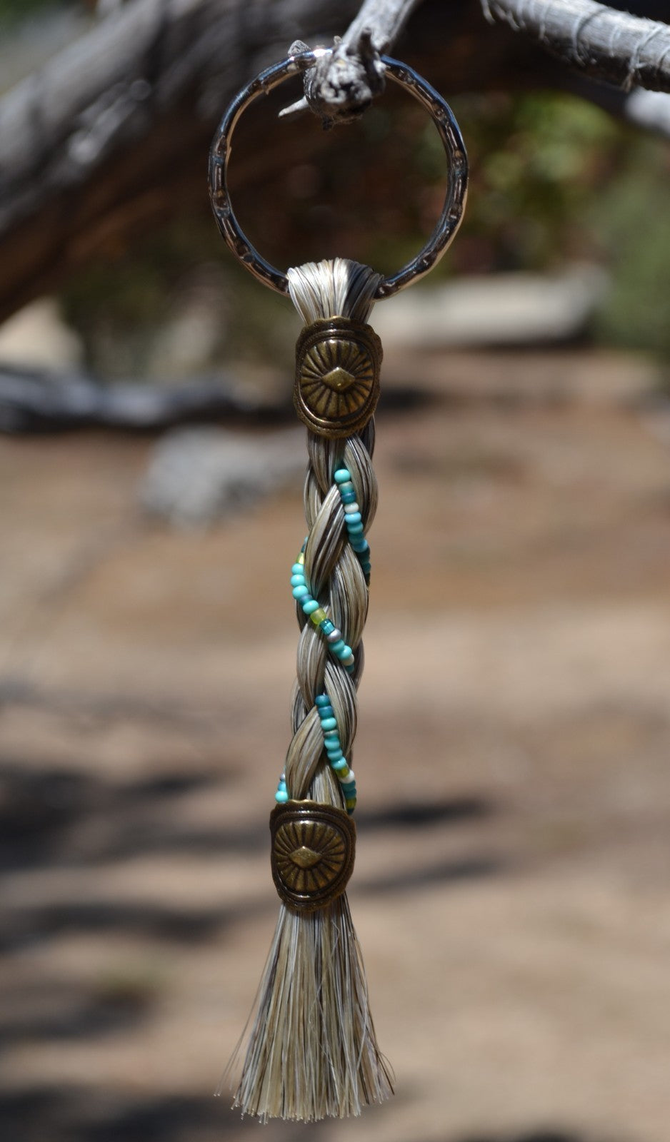 Beautiful Handmade Spiral Braid Horsehair Key Ring / Chain with colorful seed beads. Full length is 6" including the upgraded key ring.   Very durable and makes a great gift for any horse lover.   Due to the nature of natural horse hair, color and fittings may vary slightly from photo shown.  The photos don't do them justice, much more lovely in person.